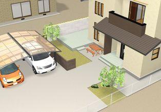 広い敷地を生かし、バーベキューテラスやカーポートなど、ゆとりのあるガーデン工事ができました。